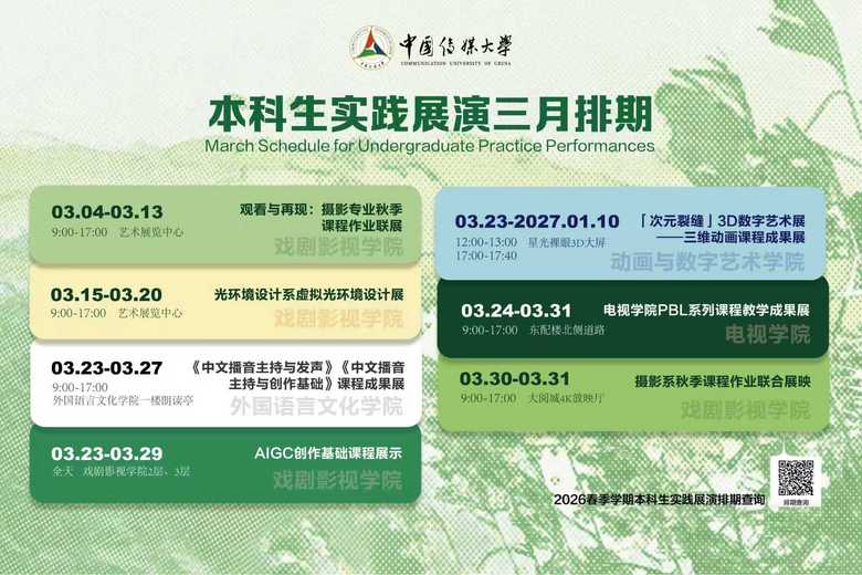 • 本科生實踐展演三月排期